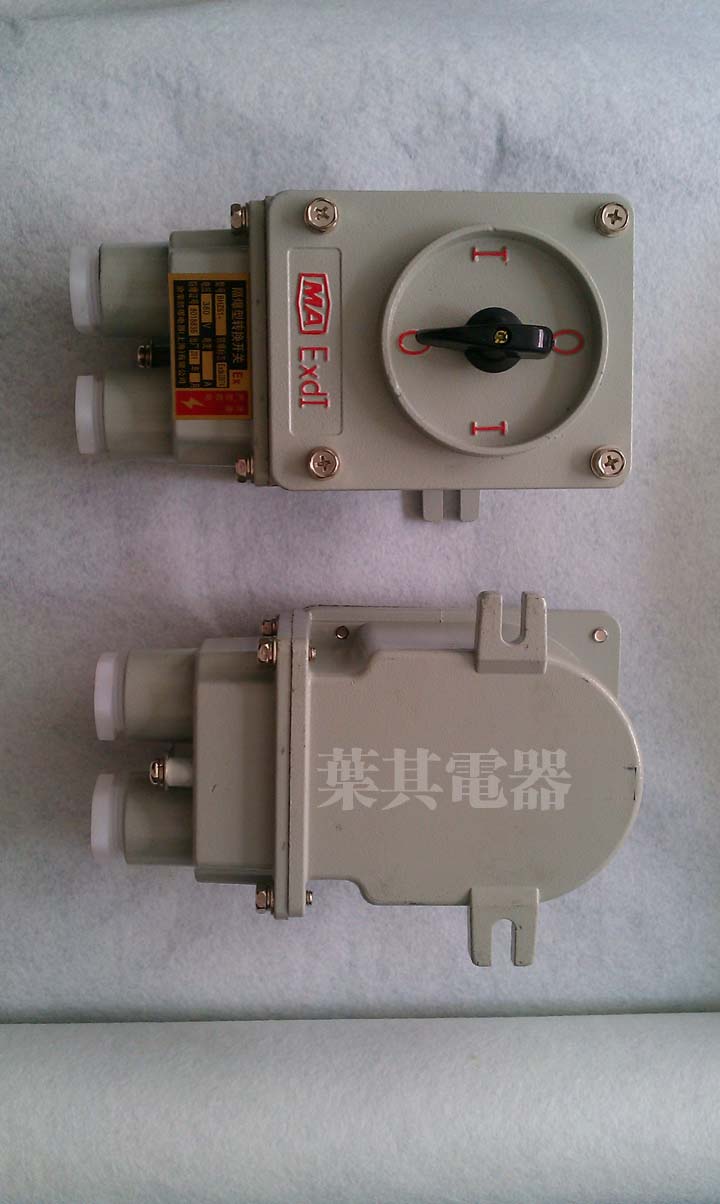 隔爆型外壳采用优质铝合金压铸成型,表面进行喷塑处理,大大加强设备的防腐能力;本产品在电压220V~380V,电流10-60A的电气线路中作电源引入开关,并可控制电动机的起动、停止、变速、换向等;可使用电缆或钢管布线。